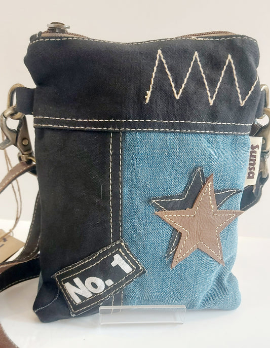 Denim & Leather Shoulder Bag - Blue/Black/Brown