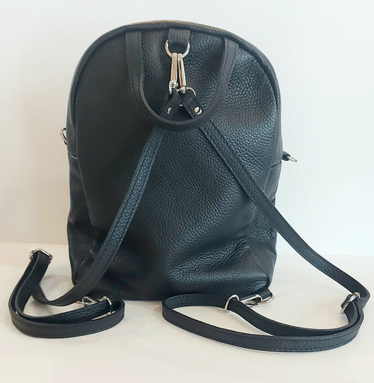 Italian Leather Mini Back-Pack - Denim Blue & Chocolate