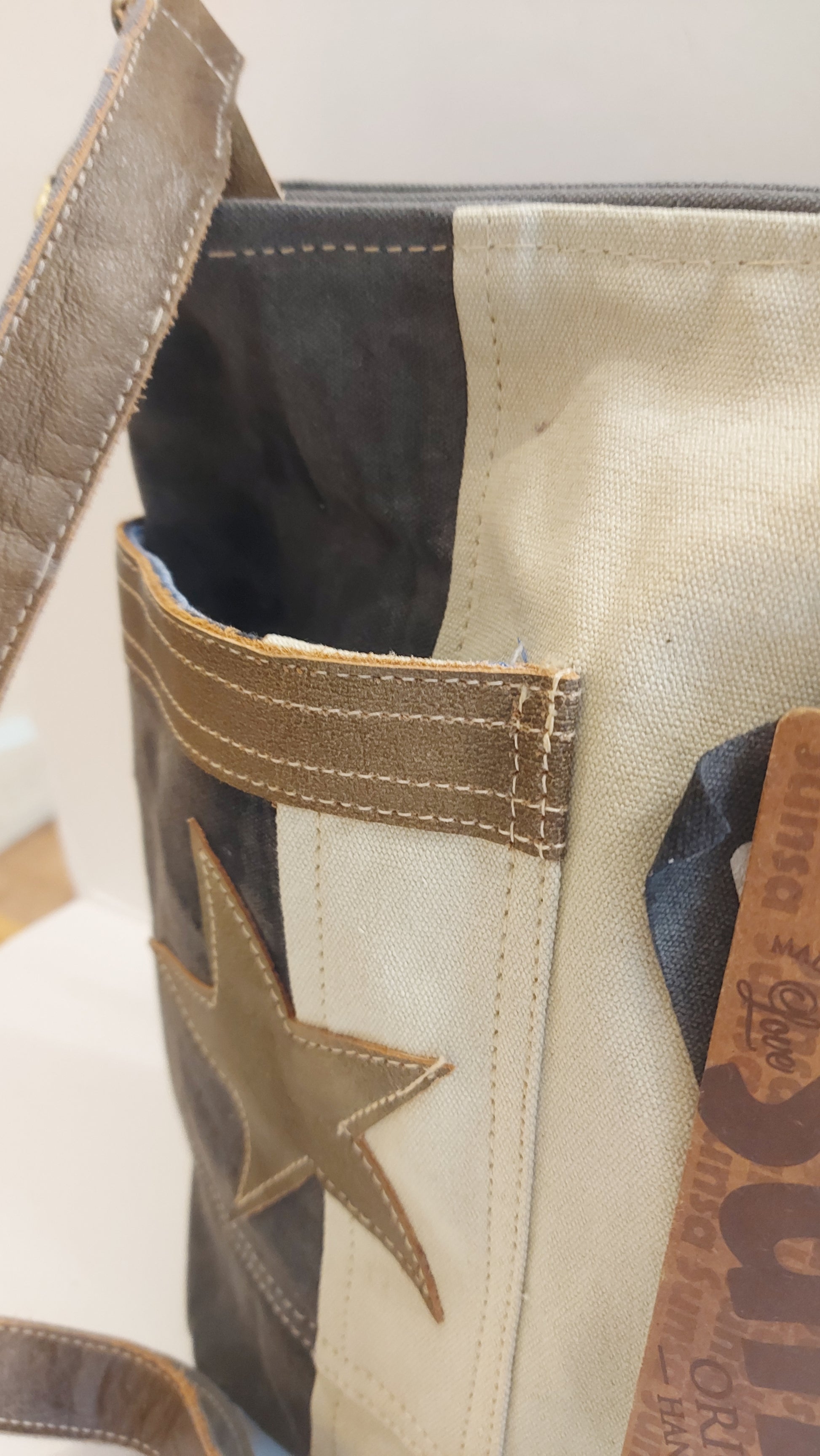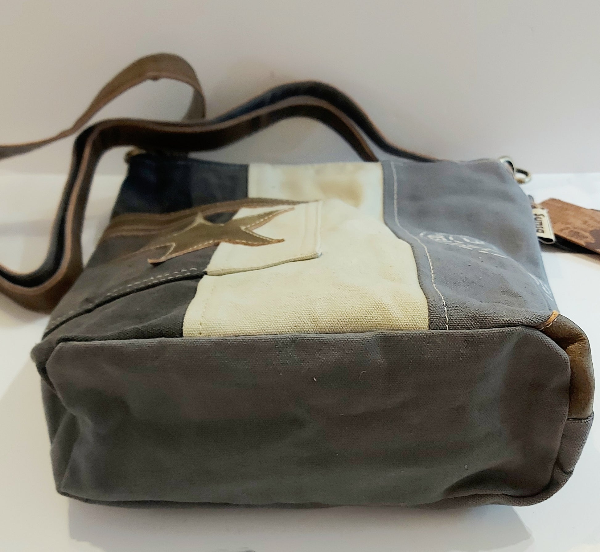 Leather & Canvas Cross-Body/Shoulder Bag - Star
