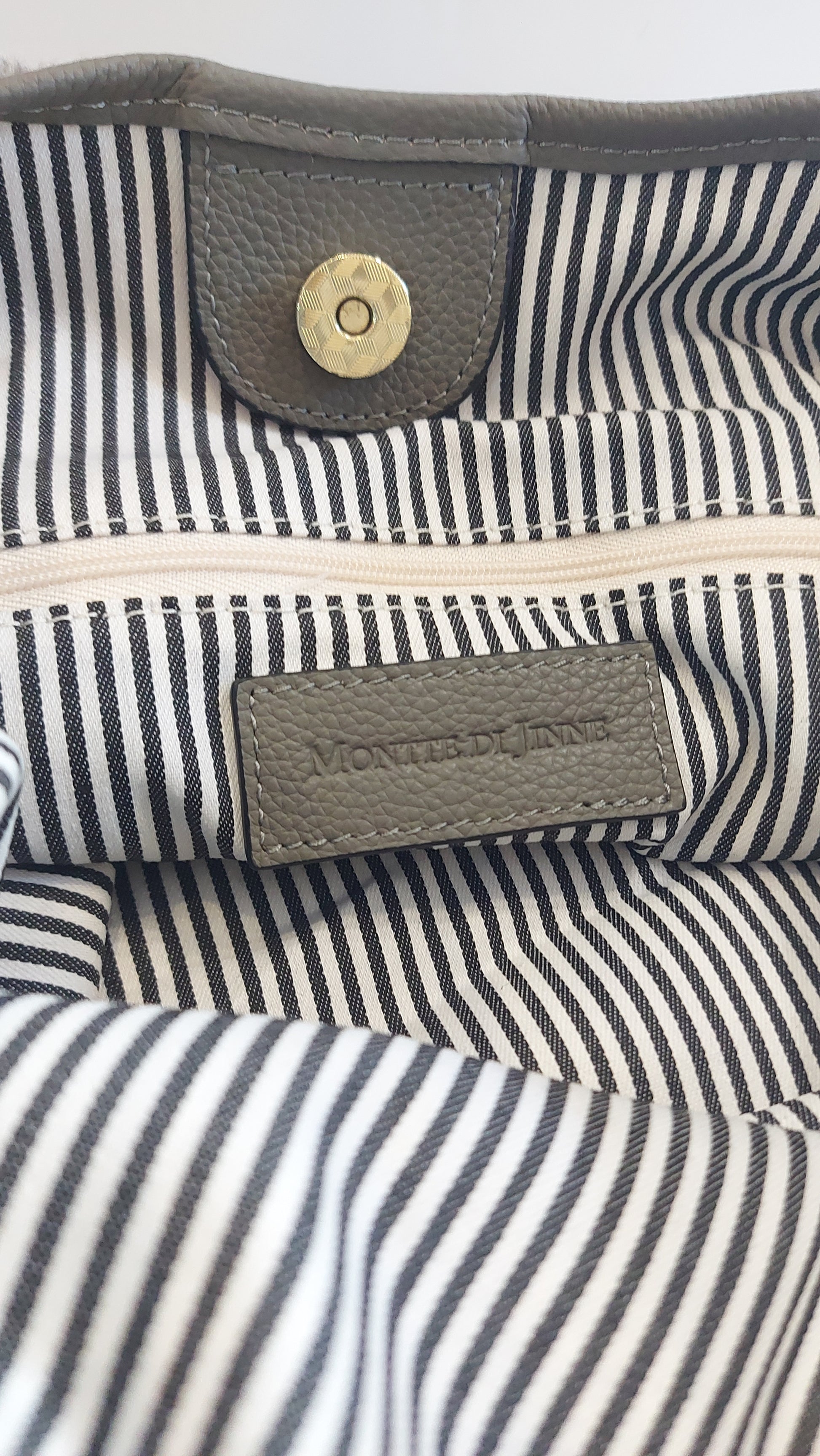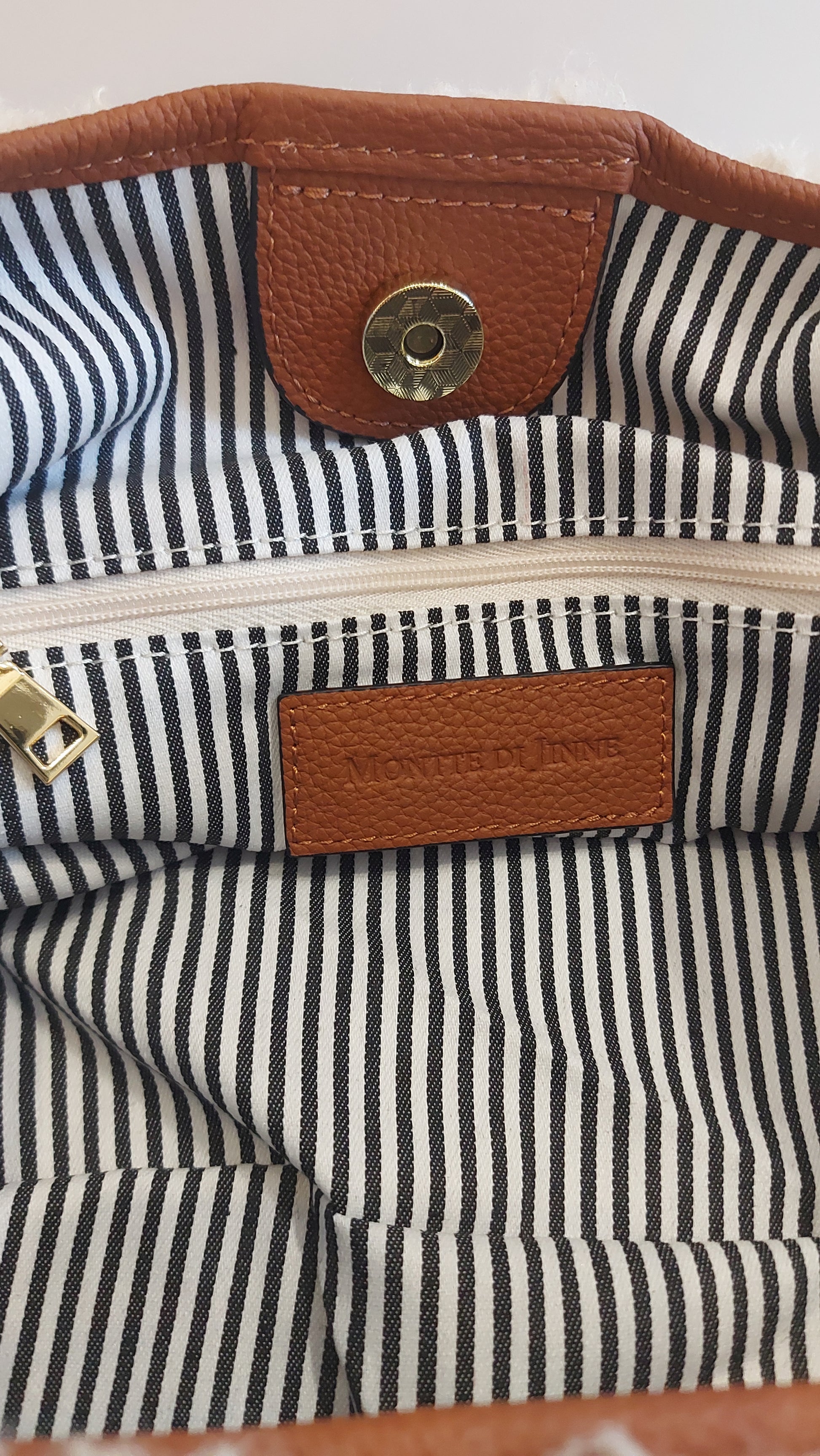 Magnetic fastening (gold metal work) with an internal zipped side pocket