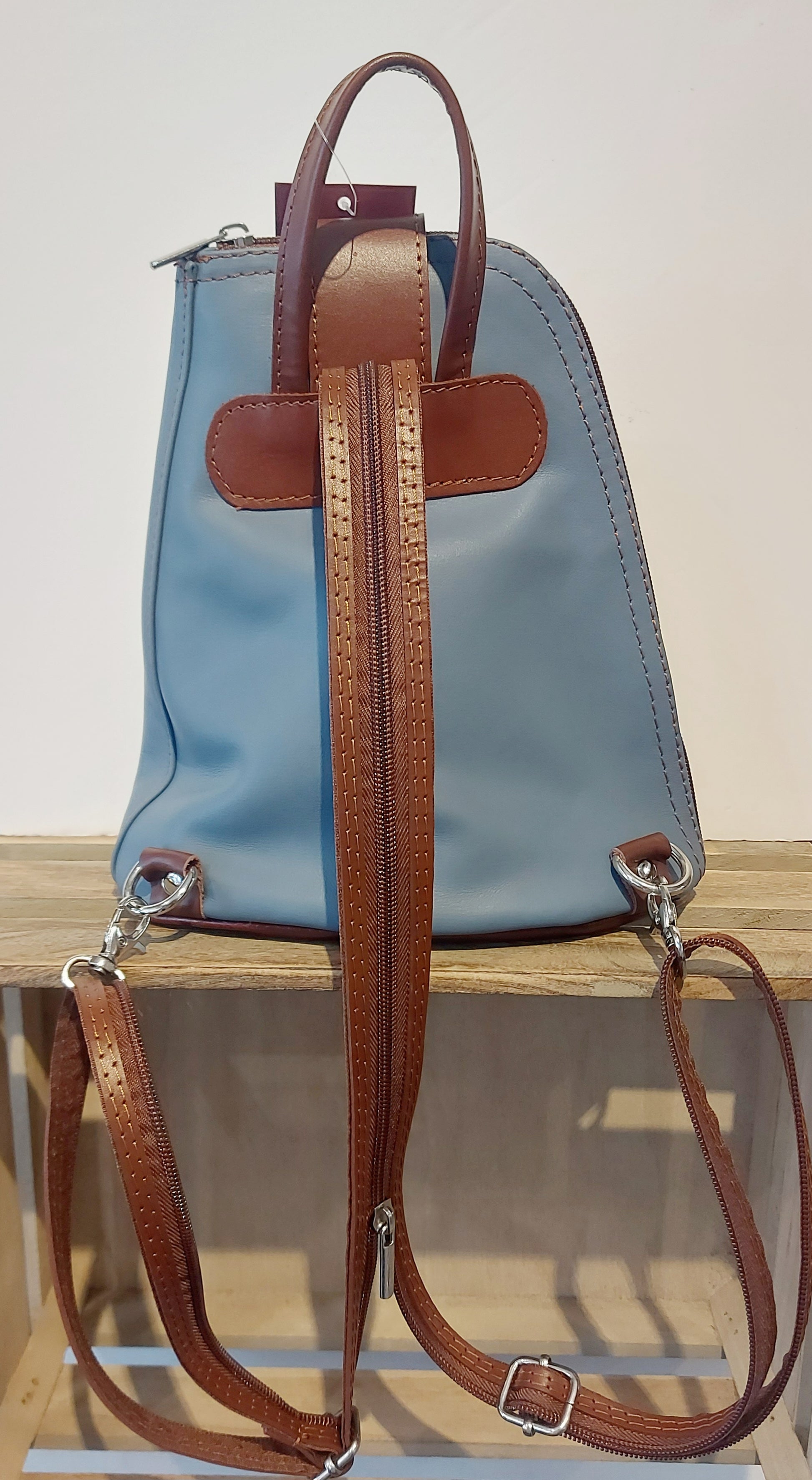 Italian Leather Mini Back-Pack - Denim Blue & Chocolate