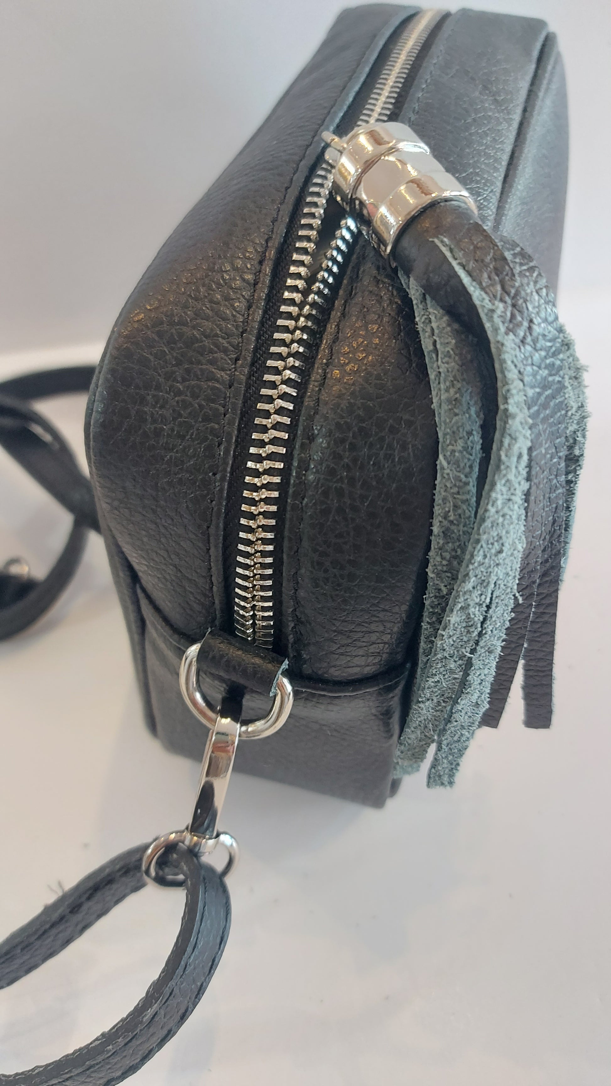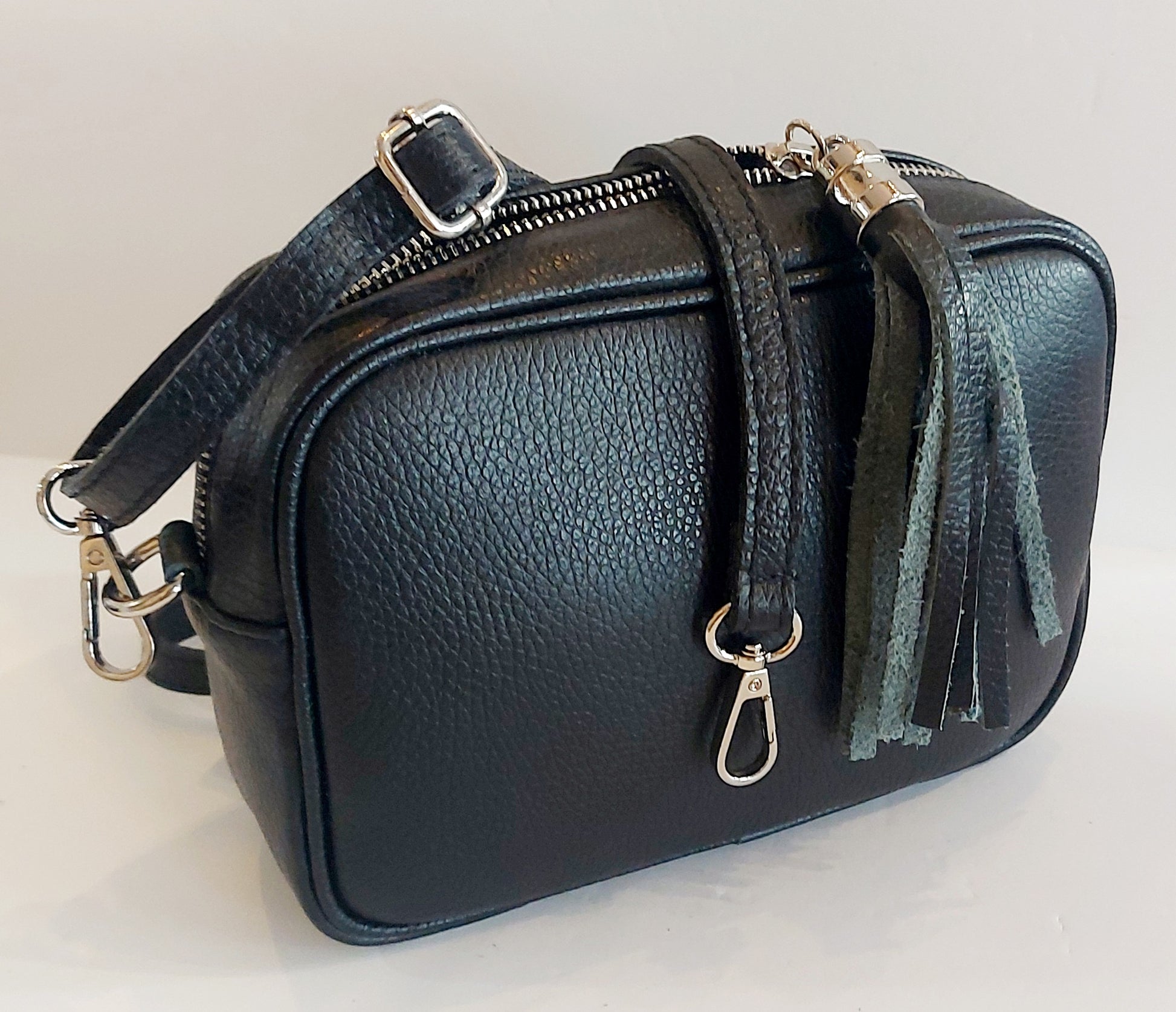 Italian Leather Cross-Body/Shoulder/Camera Bag - Black