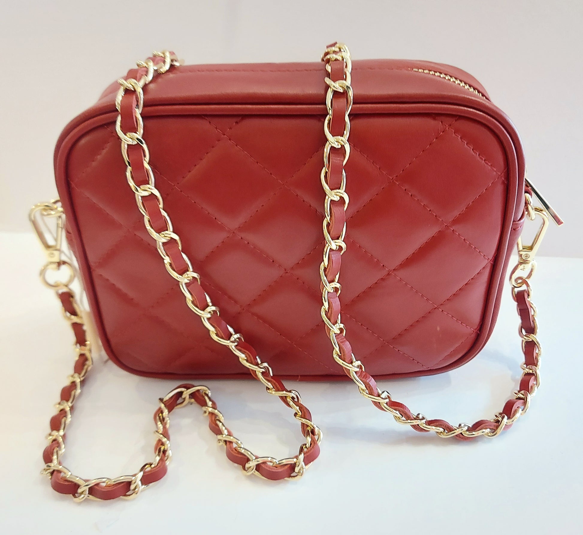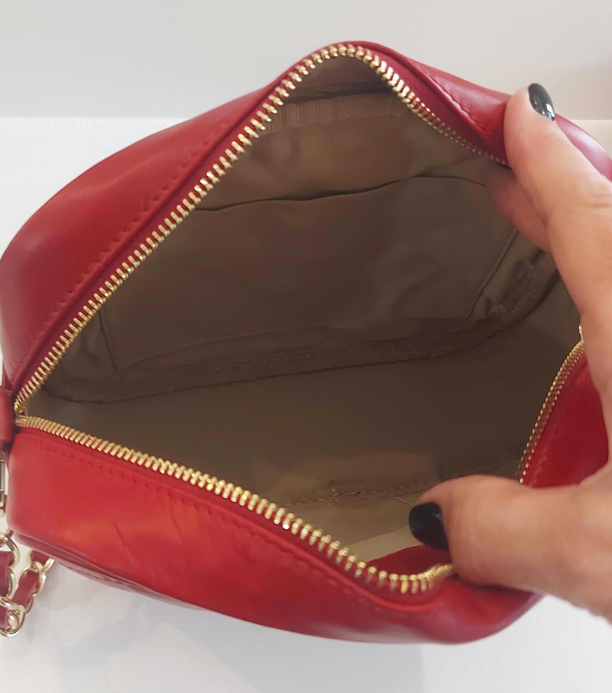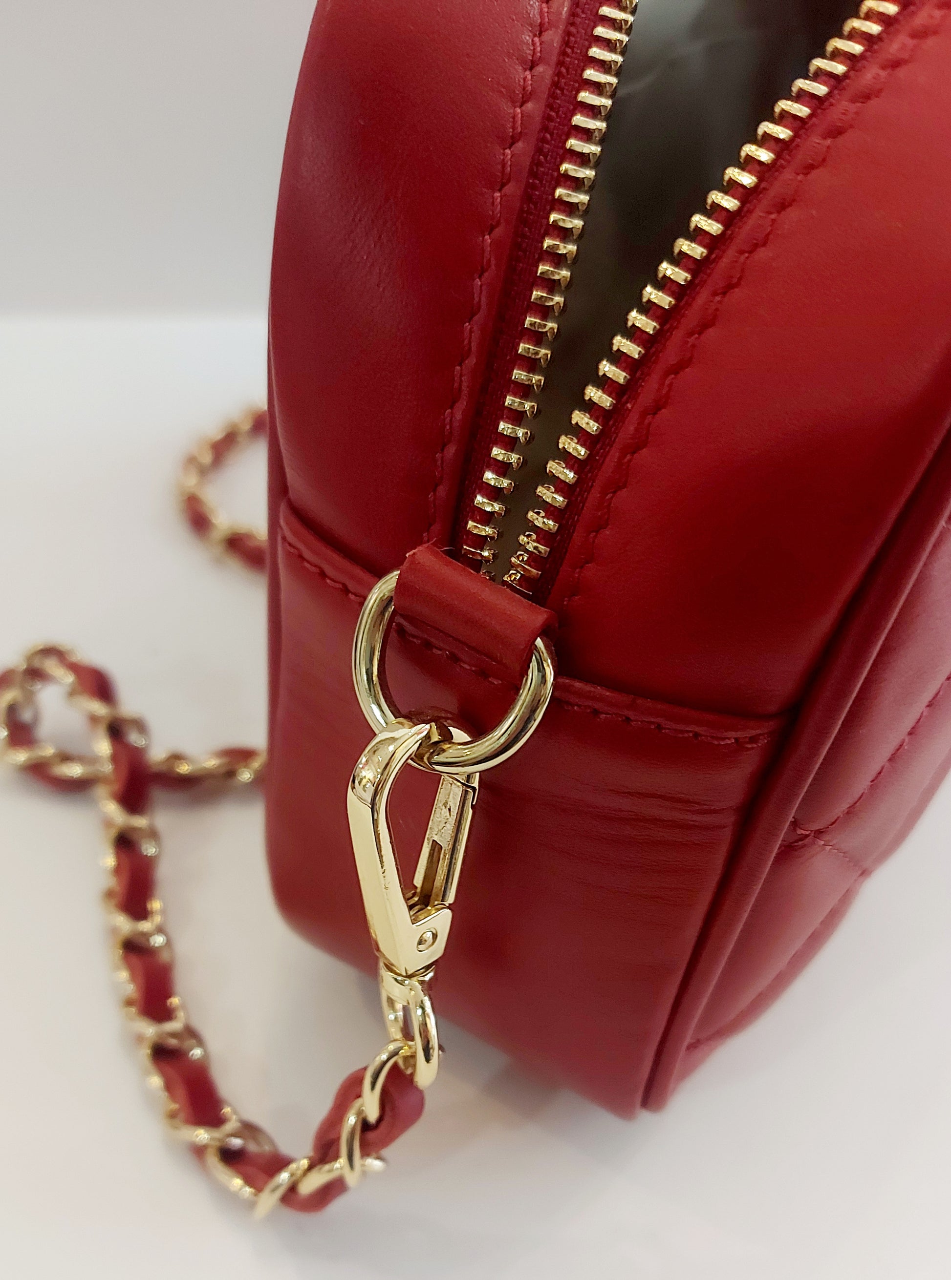 Italian smooth leather bag in RICH RED