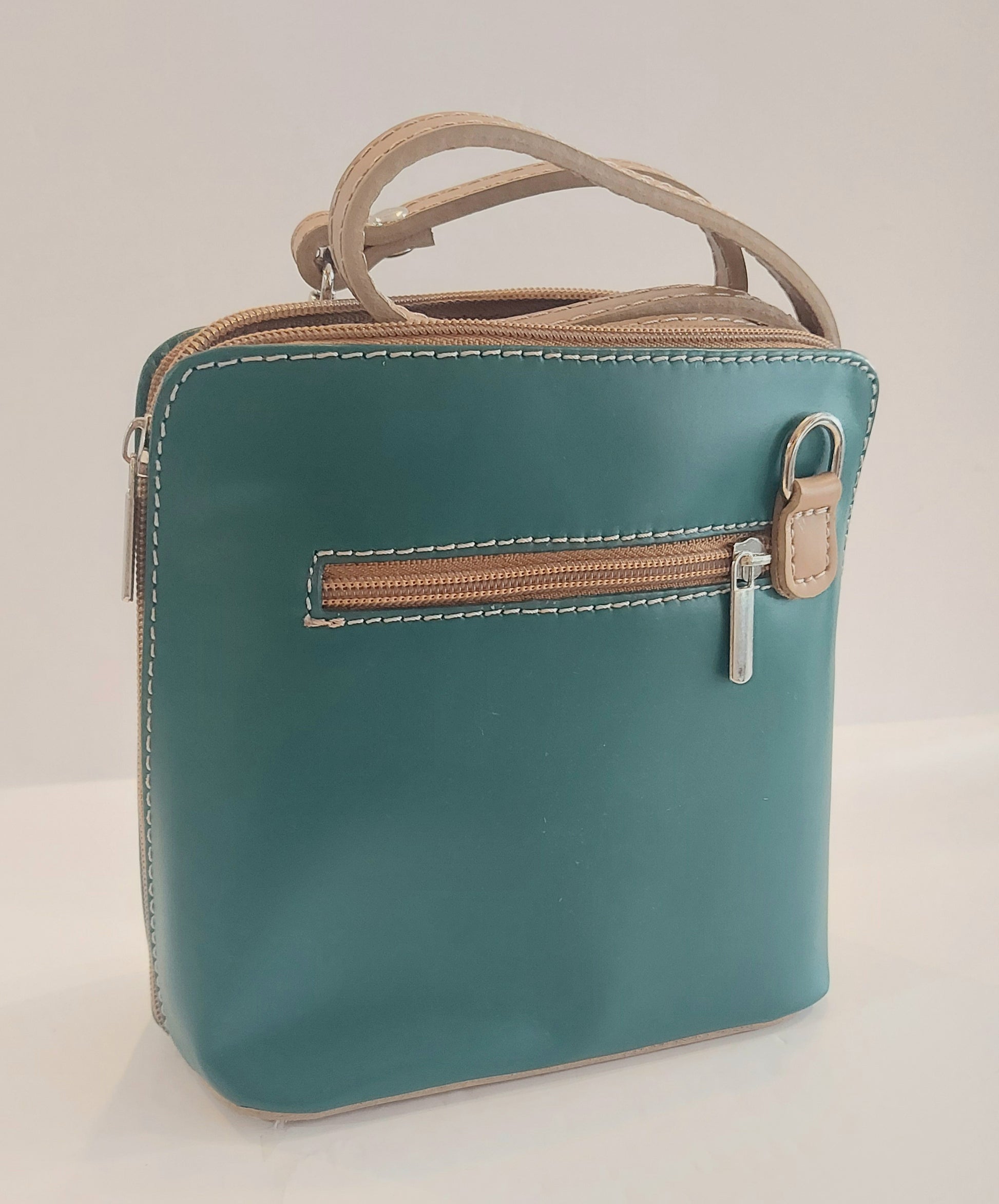 Italian Leather Cross-body/Shoulder Bag - Teal & Tan
