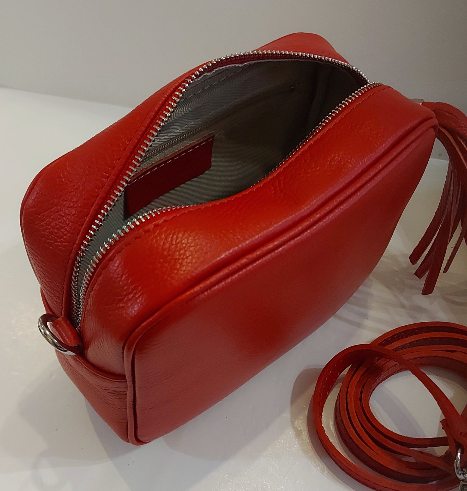 Italian Leather Cross-Body/Shoulder/Camera Bag - Red